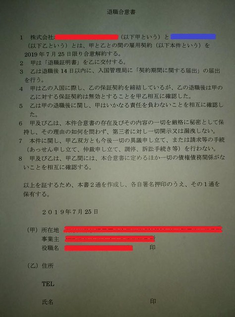 Vừa rồi công ty cũ gửi cho mình 1 bản 退職合意書 với nội dung như hình đính kèm.