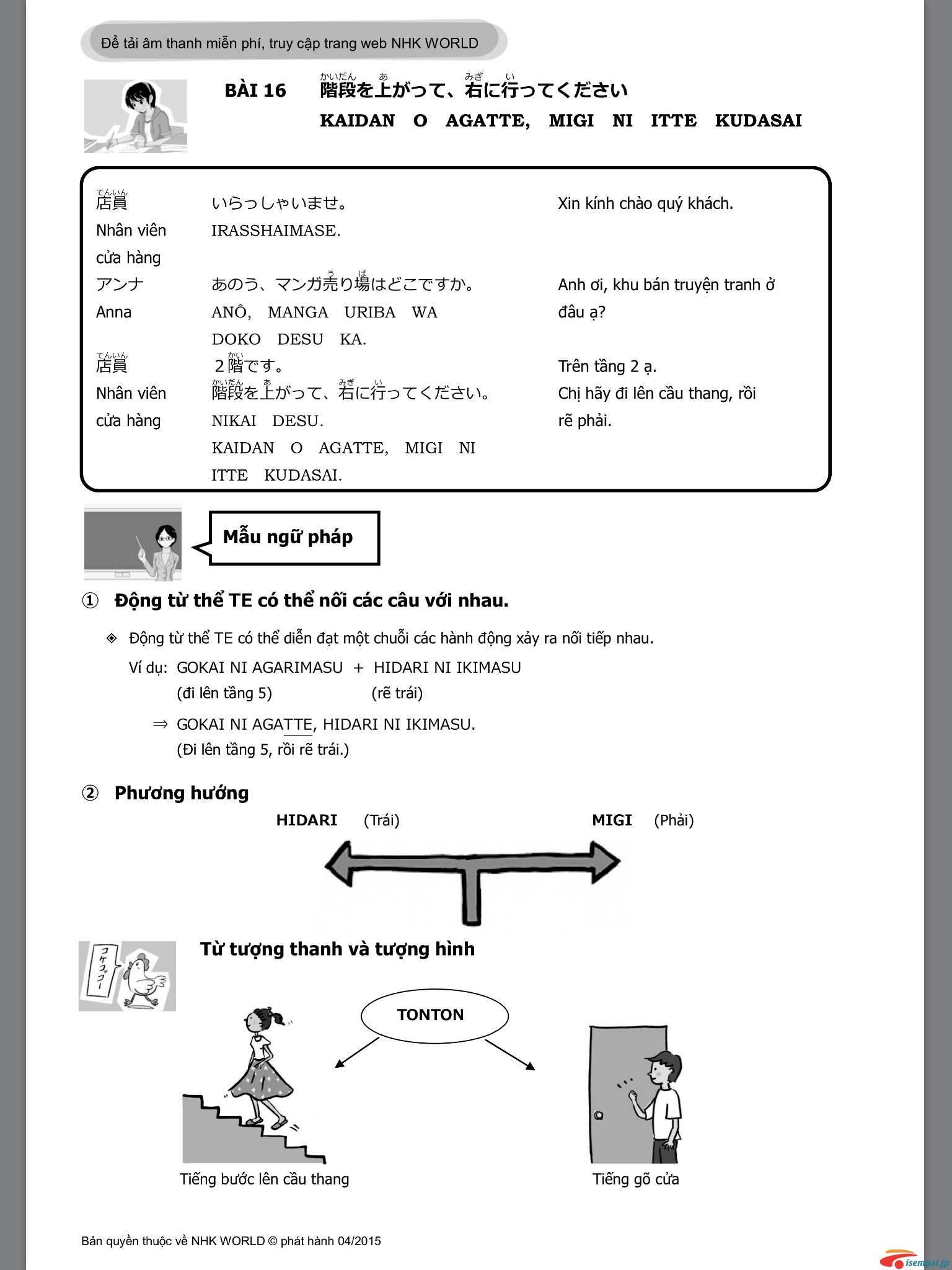 Bắt đầu ngày mới với 5 bài tiếp theo ( từ bài 16 - bài 20 ) của giáo trình tiếng nhật giao tiếp sơ cấp nhé.